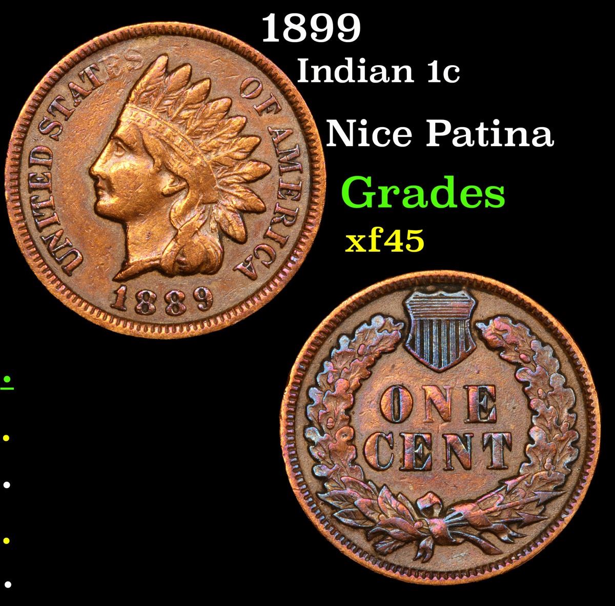 1899 Indian Cent 1c Grades xf+.