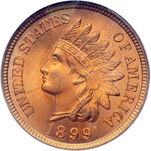 1899 Indian Head Cent S-11. NGC graded MS-65 Red. Accompanied by an Eagle Eye certificate. Pop 153; 64 finer .