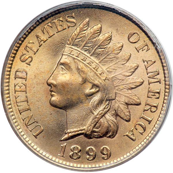 1899 Indian Head Cent. PCGS graded MS-66 Red. Accompanied by an Eagle Eye certificate. Housed in an Old Green Holder. Dazzling in its beauty and aesthetic appeal. Pop 80; 9 finer (PCGS # 2204) .