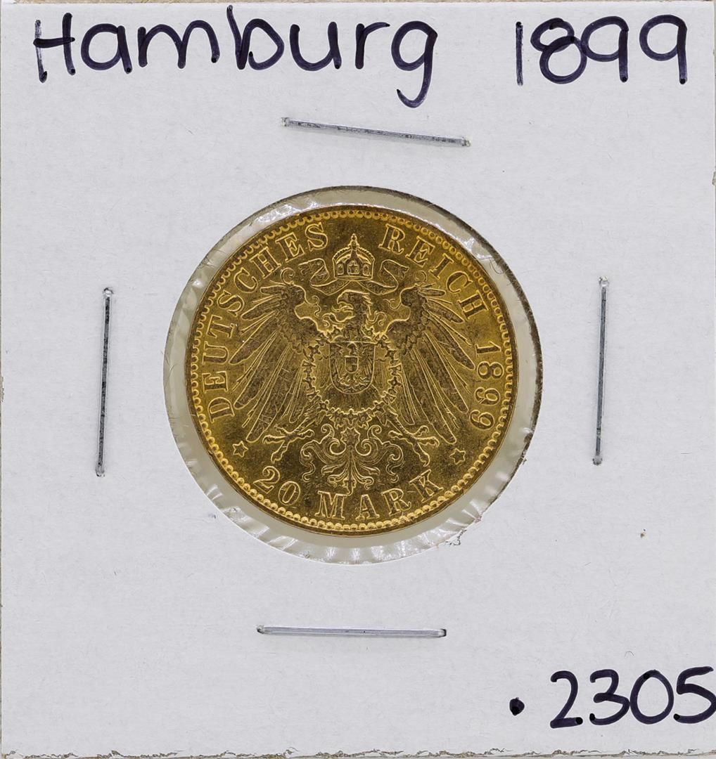 One 1899-J Hamburg 20 Mark Gold Coin.