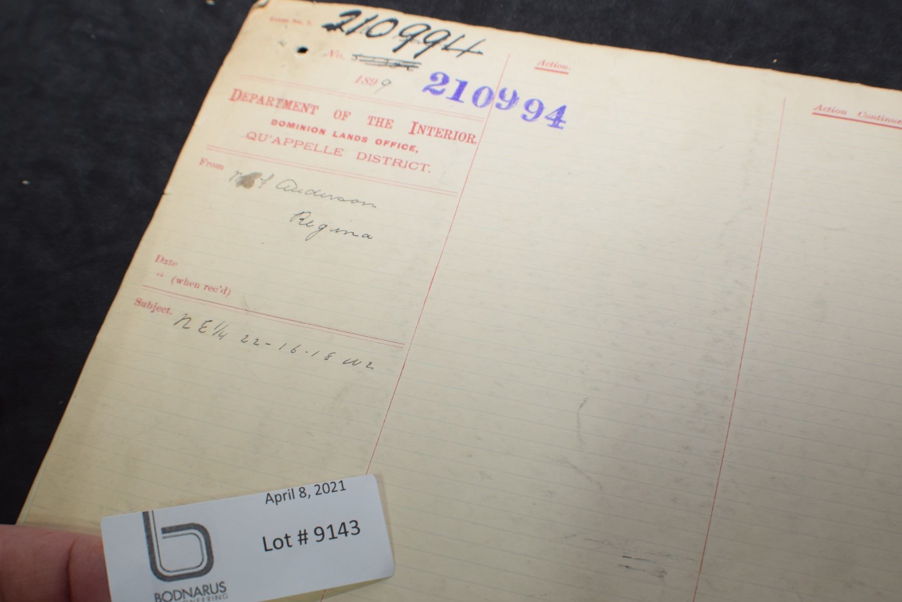 1899 LAND TITLES CERTIFICATE SASKATCHEWAN - NWT - ASSA