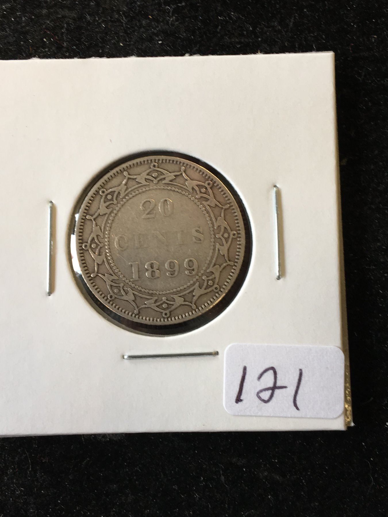 NICE GRADE VF-20 NEWFOUNDLAND 20 CENTS WITH LARGE 9,s