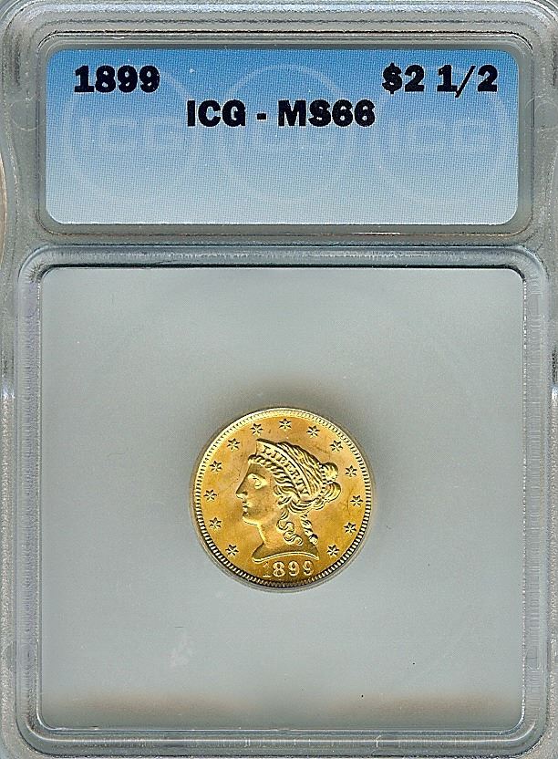 1899 LIBERTY HEAD $2.50 GOLD QUARTER EAGLE ICG MS66