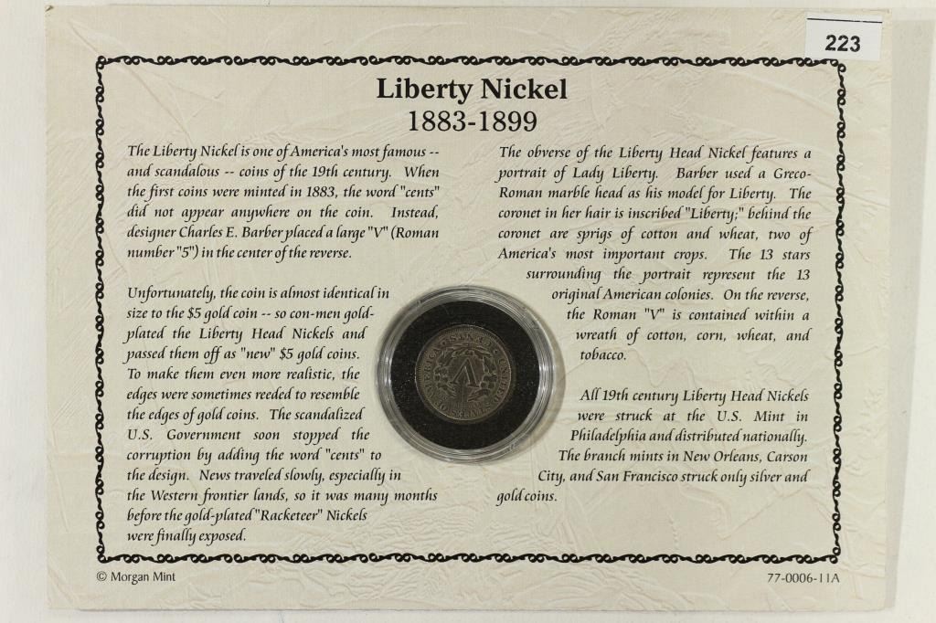 1899 LIBERTY "V" NICKEL ON ILLUSTRATED CARD