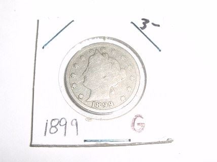 1899 LIBERTY "V" NICKEL RED BOOK VALUE $3.00+ *NICE EARLY VERY GOOD GRADE NICKEL*!! LIBERTY NICKEL CAME OUT OF SAFE BOX!! ***Coin, Currency & All Items Listed in this auction - Grades, Conditions and Values are not Safe Deposit Coins LLC Responsibilty. Grades, Condition and Values are determined by Consigner(s) & Buyers