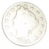 1899 LIBERTY "V" NICKEL RED BOOK VALUE IS $5.00+ *NICE EARLY GOOD GRADE*!! LIBERTY NICKEL CAME OUT OF SAFE BOX!! ***Coin, Currency & All Items Listed in this auction - Grades, Conditions and Values are not Safe Deposit Coins LLC Responsibilty. Grades, Condition and Values are determined by Consigner(s) & Buyers ONLY