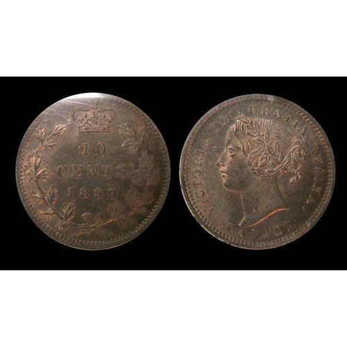 1899 Large 9's 10¢ ICCS MS-65 PQ+. Light autumn shades over full underlying luster. Wow! An amazing "Victorian" example. Excellent strike with clean fields and great surfaces. The nicest example ever handled by TCNC. Only 1 finer