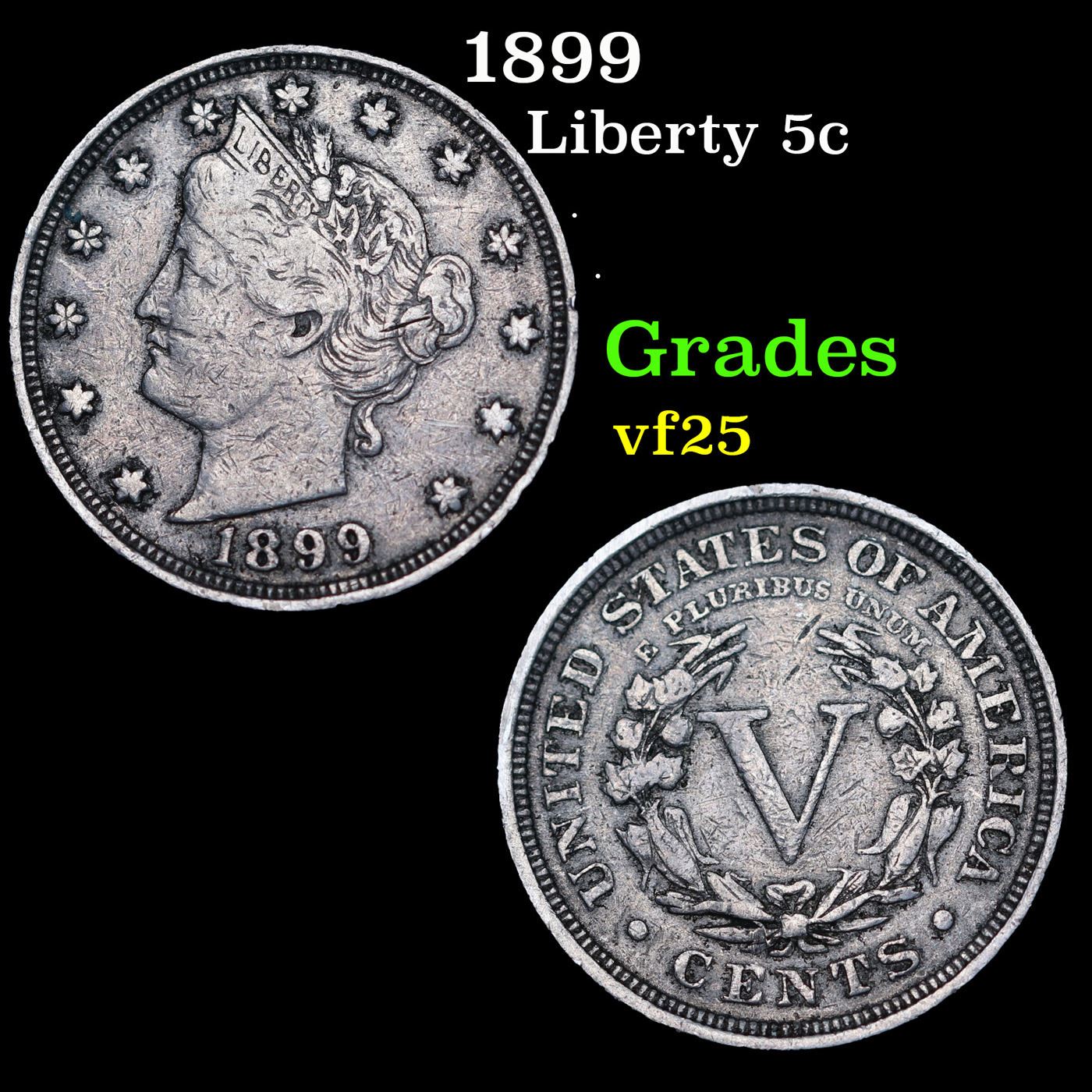 1899 Liberty Nickel 5c Grades vf+.