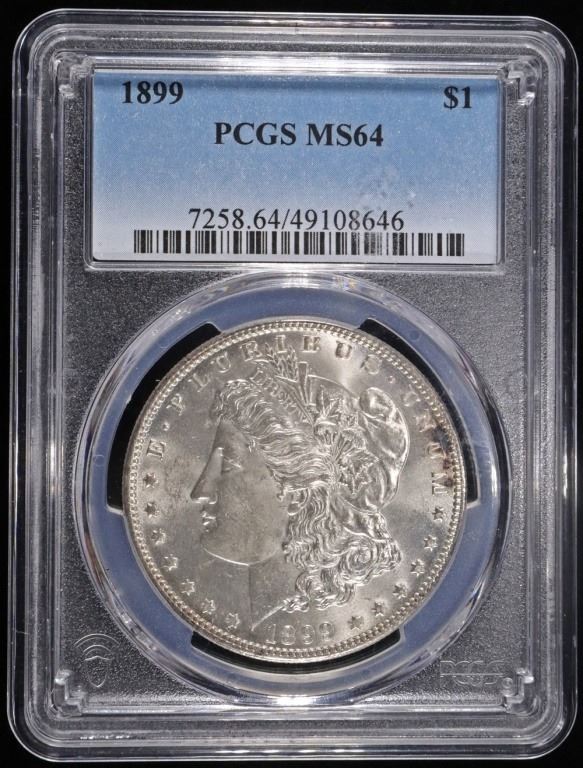 Grading: Every person has their own opinion. It is the responsibility of the buyer to examine and grade to their own satisfaction before they bid. ABSOLUTELY NO COIN RETURNS ON THE BASIS OF GRADE. Buyers shall rely entirely on their own inspection and information. Our estimates are values taken from the latest "Coin World" trends based on t he grade listed of a coin. This value/estimate is not an inducement to bid this amount. Bid the amount you wish. If you have questions or concerns about any coin, call us before you bid.