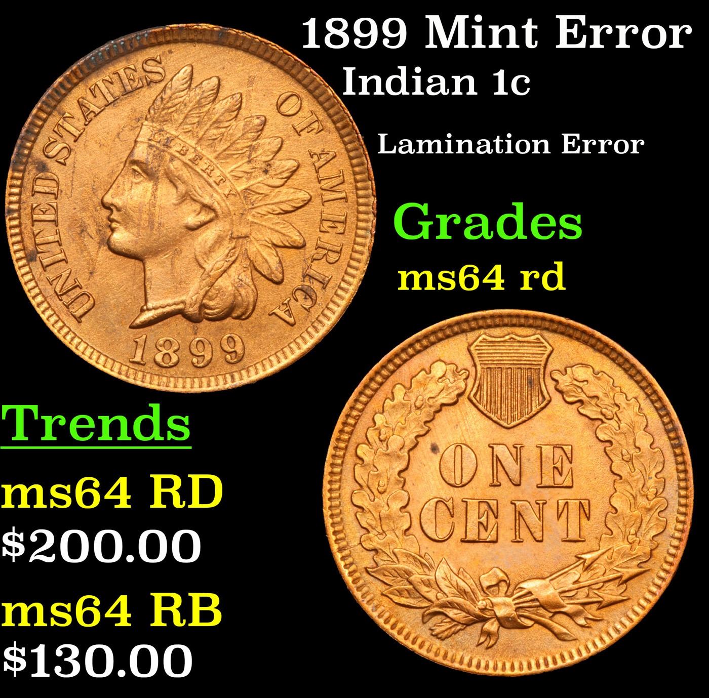 1899 Mint Error Indian Cent 1c Grades Choice Unc RD.