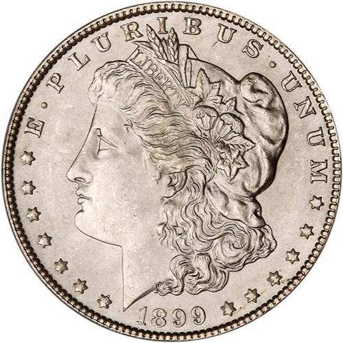 <b>1899 Morgan Dollar. PCGS graded MS66.</b> A frosty Gem with brilliant, untoned surfaces and a powerful strike. Looking at this handsome coin under magnification, what is revealed are sharp-edged devices and lettering throughout. Only 330,846 dollars were minted at Philadelphia in 1899. For years, therefore, this has been a popular date among collectors, and far less expensive than the 1893 P-mint with its similar mintage <b>(PCGS # 7258)</b>