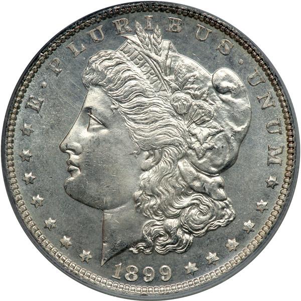 1899 Morgan Dollar. PCGS graded MS-65. Well struck with reflective fields (PCGS # 7258) .