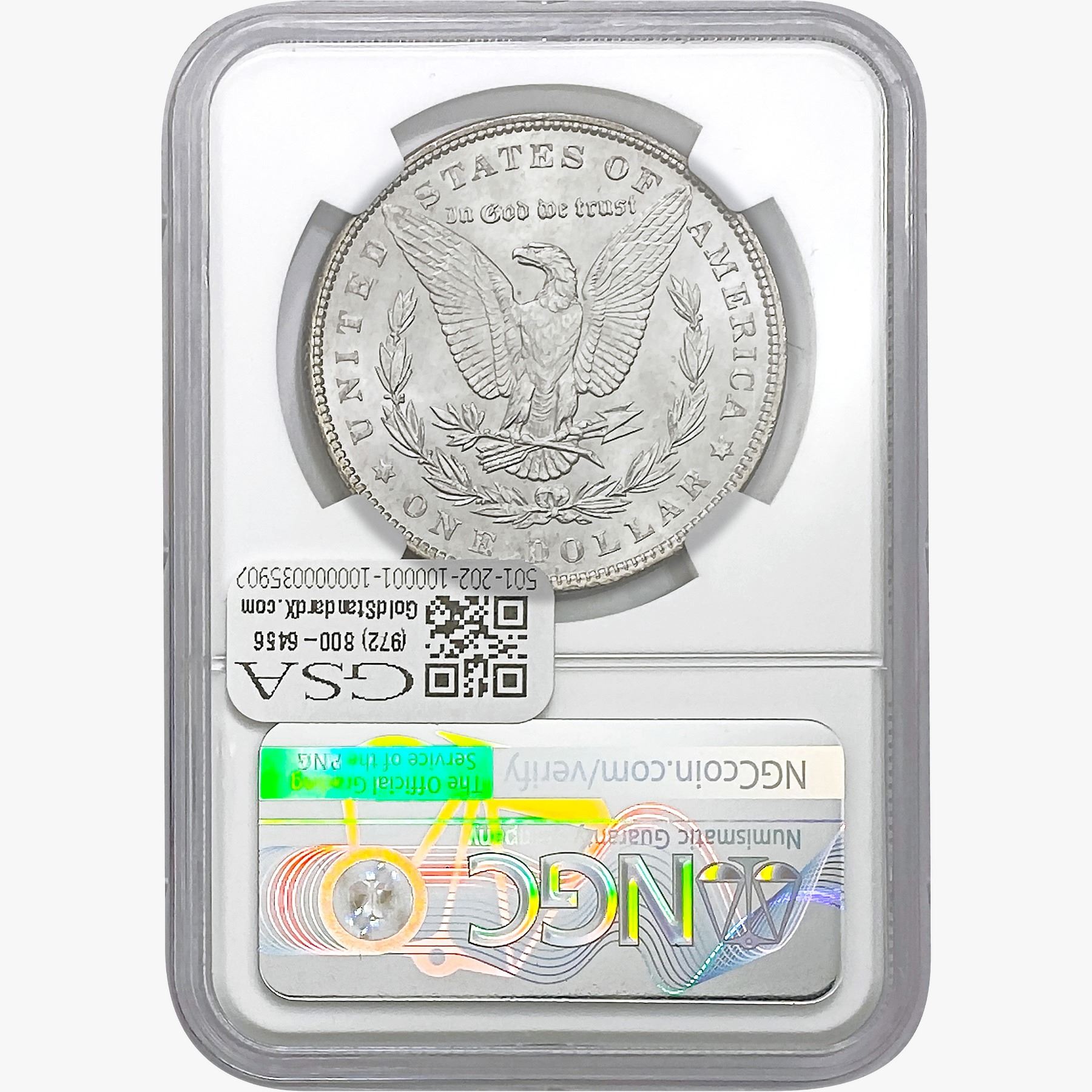 e. Coins sold referencing a third-party grading service are sold “AS IS” without any express or implied warranty, except for a guarantee by GSA that they are genuine. Removal or alteration of the holder, voids all of Bidder’s claims concerning that Product. Certain warranties may be available from the grading services and Bidders are referred to them for further details: Numismatic Guaranty Corporation (NGC), PO Box 4776, Sarasota, FL 34230, www.ngccoin.com/services/writtenguarantee.asp; Professional Coin Grading Services (PCGS), PO Box 9458, Newport Beach, CA 92658, www.pcgs.com/guarantee.html; ANACS, 6555 S. Kenton St., Ste. 303, Englewood, CO 80111; and Independent Coin Grading Co. (ICG), 7901 East Bellview, Ave., Suite 50, Englewood, CO 80111.