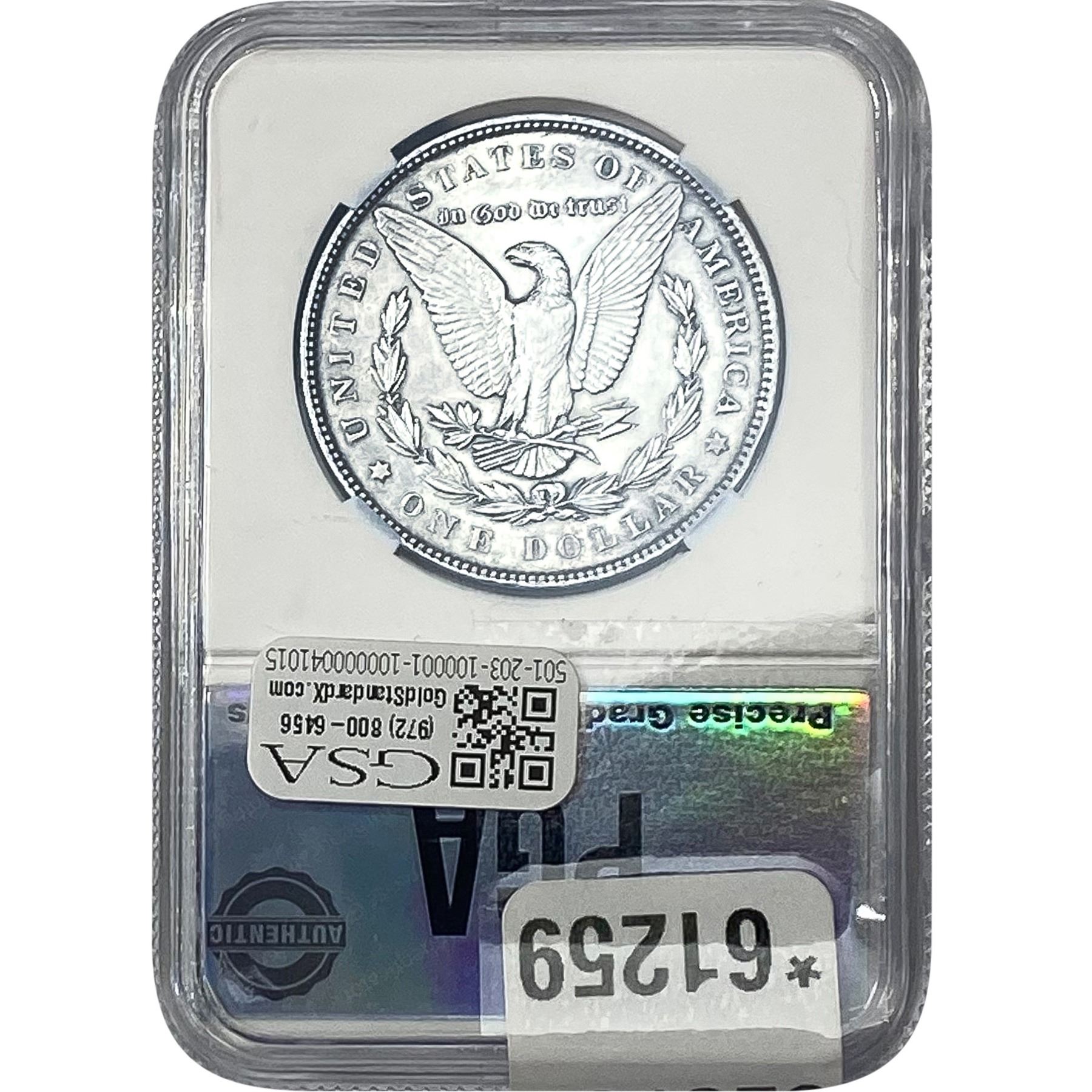 e. Coins sold referencing a third-party grading service are sold “AS IS” without any express or implied warranty, except for a guarantee by GSA that they are genuine. Removal or alteration of the holder, voids all of Bidder’s claims concerning that Product. Certain warranties may be available from the grading services and Bidders are referred to them for further details: Numismatic Guaranty Corporation (NGC), PO Box 4776, Sarasota, FL 34230, www.ngccoin.com/services/writtenguarantee.asp; Professional Coin Grading Services (PCGS), PO Box 9458, Newport Beach, CA 92658, www.pcgs.com/guarantee.html; ANACS, 6555 S. Kenton St., Ste. 303, Englewood, CO 80111; and Independent Coin Grading Co. (ICG), 7901 East Bellview, Ave., Suite 50, Englewood, CO 80111.