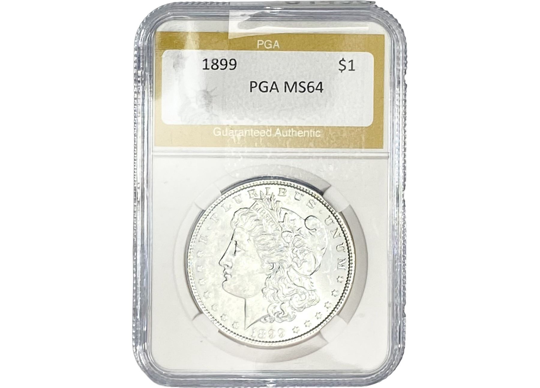 COINS AND CURRENCY LISTED IN GSA’S CATALOG AS GRADED AND ENCAPSULATED BY PCGS, NGC, ANACS, ICG, PCGS CURRENCY, PMG, PCGS BANKNOTE GRADING, CMC OR ANY OTHER THIRD-PARTY GRADING SERVICE ARE LIKEWISE SOLD “AS-IS” EXCEPT AS EXPRESSLY SET FORTH HEREIN. ALL THIRD-PARTY GRADING SERVICE GUARANTEES, INCLUDING AUTHENTICITY, ARE THE SOLE RESPONSIBILITY OF THE THIRD-PARTY GRADING SERVICE AND NOT WARRANTIES OR GUARANTEES OF GSA. BIDDERS SHOULD CONTACT THESE THIRD-PARTY GRADING SERVICES DIRECTLY WITH RESPECT TO ANY CLAIMS OR QUESTIONS THEY MAY HAVE CONCERNING THEIR GUARANTEES AND WARRANTIES. BIDDERS ACKNOWLEDGE AND AGREE THAT AUCTIONEER IS NOT BOUND BY OR LIABLE FOR ANY OPINION OR CERTIFICATION BY ANY THIRD-PARTY GRADING SERVICE. REMOVAL OF A PRODUCT FROM ITS PROTECTIVE CASING OR HOLDER OR ALTERATION OF ANY COIN HOLDER WAIVES ALL RIGHTS CONCERNING THE PRODUCT CONTAINED THEREIN.