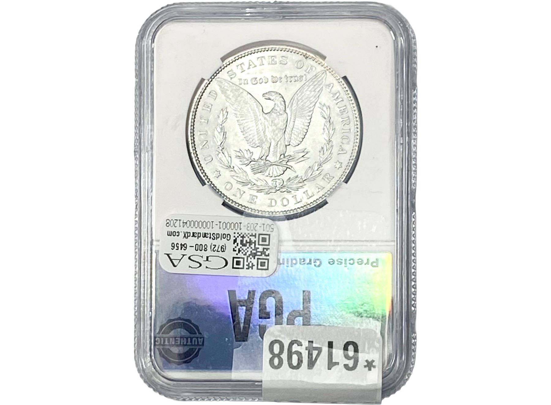 l. All non-certified coins and currency are guaranteed genuine, but are not guaranteed as to grade, since grading is a matter of opinion, an art and not a science, and therefore the description rendered by GSA or any third-party grading service may not agree with the opinion of others (including trained experts), and the same expert may not grade the same item with the same grade at two different times. GSA may, but is not obligated to, express an opinion as to non-certified numismatic items, in GSA’s opinion, or by its employees’ experience and the current interpretation of the American Numismatic Association’s standards as of the date the catalog was prepared. There is no guarantee or warranty expressed or implied that the grading opinions utilized by GSA, if any, will meet the standards of any grading service at any time in the future.