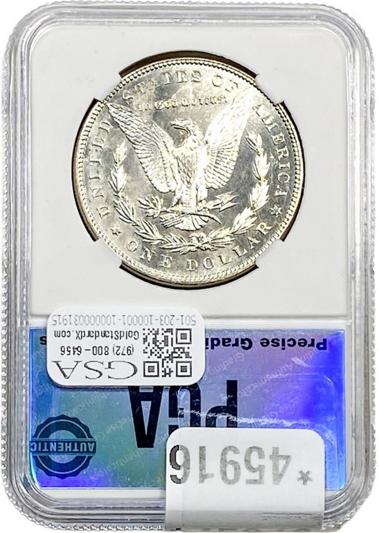 e. Coins sold referencing a third-party grading service are sold “AS IS” without any express or implied warranty, except for a guarantee by GSA that they are genuine. Removal or alteration of the holder, voids all of Bidder’s claims concerning that Product. Certain warranties may be available from the grading services and Bidders are referred to them for further details: Numismatic Guaranty Corporation (NGC), PO Box 4776, Sarasota, FL 34230, www.ngccoin.com/services/writtenguarantee.asp; Professional Coin Grading Services (PCGS), PO Box 9458, Newport Beach, CA 92658, www.pcgs.com/guarantee.html; ANACS, 6555 S. Kenton St., Ste. 303, Englewood, CO 80111; and Independent Coin Grading Co. (ICG), 7901 East Bellview, Ave., Suite 50, Englewood, CO 80111.