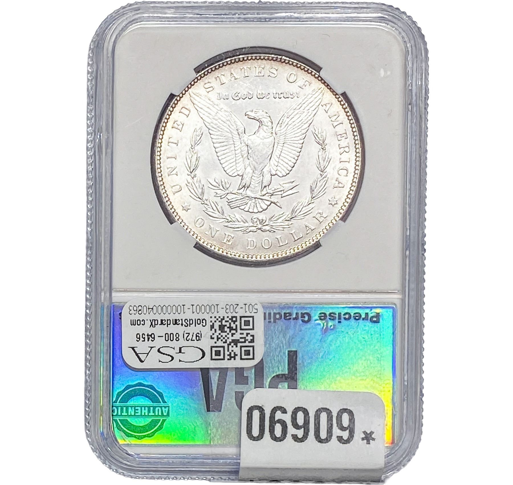COINS AND CURRENCY LISTED IN GSA’S CATALOG AS GRADED AND ENCAPSULATED BY PCGS, NGC, ANACS, ICG, PCGS CURRENCY, PMG, PCGS BANKNOTE GRADING, CMC OR ANY OTHER THIRD-PARTY GRADING SERVICE ARE LIKEWISE SOLD “AS-IS” EXCEPT AS EXPRESSLY SET FORTH HEREIN. ALL THIRD-PARTY GRADING SERVICE GUARANTEES, INCLUDING AUTHENTICITY, ARE THE SOLE RESPONSIBILITY OF THE THIRD-PARTY GRADING SERVICE AND NOT WARRANTIES OR GUARANTEES OF GSA. BIDDERS SHOULD CONTACT THESE THIRD-PARTY GRADING SERVICES DIRECTLY WITH RESPECT TO ANY CLAIMS OR QUESTIONS THEY MAY HAVE CONCERNING THEIR GUARANTEES AND WARRANTIES. BIDDERS ACKNOWLEDGE AND AGREE THAT AUCTIONEER IS NOT BOUND BY OR LIABLE FOR ANY OPINION OR CERTIFICATION BY ANY THIRD-PARTY GRADING SERVICE. REMOVAL OF A PRODUCT FROM ITS PROTECTIVE CASING OR HOLDER OR ALTERATION OF ANY COIN HOLDER WAIVES ALL RIGHTS CONCERNING THE PRODUCT CONTAINED THEREIN.