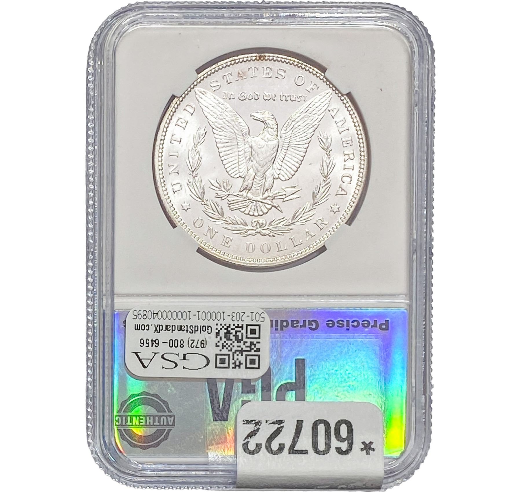 COINS AND CURRENCY LISTED IN GSA’S CATALOG AS GRADED AND ENCAPSULATED BY PCGS, NGC, ANACS, ICG, PCGS CURRENCY, PMG, PCGS BANKNOTE GRADING, CMC OR ANY OTHER THIRD-PARTY GRADING SERVICE ARE LIKEWISE SOLD “AS-IS” EXCEPT AS EXPRESSLY SET FORTH HEREIN. ALL THIRD-PARTY GRADING SERVICE GUARANTEES, INCLUDING AUTHENTICITY, ARE THE SOLE RESPONSIBILITY OF THE THIRD-PARTY GRADING SERVICE AND NOT WARRANTIES OR GUARANTEES OF GSA. BIDDERS SHOULD CONTACT THESE THIRD-PARTY GRADING SERVICES DIRECTLY WITH RESPECT TO ANY CLAIMS OR QUESTIONS THEY MAY HAVE CONCERNING THEIR GUARANTEES AND WARRANTIES. BIDDERS ACKNOWLEDGE AND AGREE THAT AUCTIONEER IS NOT BOUND BY OR LIABLE FOR ANY OPINION OR CERTIFICATION BY ANY THIRD-PARTY GRADING SERVICE. REMOVAL OF A PRODUCT FROM ITS PROTECTIVE CASING OR HOLDER OR ALTERATION OF ANY COIN HOLDER WAIVES ALL RIGHTS CONCERNING THE PRODUCT CONTAINED THEREIN.
