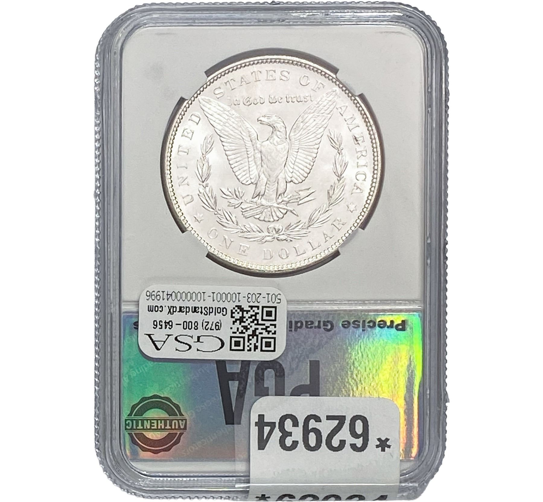 e. Coins sold referencing a third-party grading service are sold “AS IS” without any express or implied warranty, except for a guarantee by GSA that they are genuine. Removal or alteration of the holder, voids all of Bidder’s claims concerning that Product. Certain warranties may be available from the grading services and Bidders are referred to them for further details: Numismatic Guaranty Corporation (NGC), PO Box 4776, Sarasota, FL 34230, www.ngccoin.com/services/writtenguarantee.asp; Professional Coin Grading Services (PCGS), PO Box 9458, Newport Beach, CA 92658, www.pcgs.com/guarantee.html; ANACS, 6555 S. Kenton St., Ste. 303, Englewood, CO 80111; and Independent Coin Grading Co. (ICG), 7901 East Bellview, Ave., Suite 50, Englewood, CO 80111.