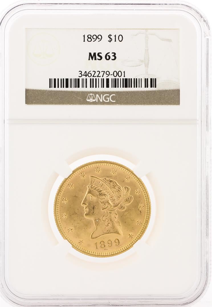 One 1899 NGC MS63 $10 Liberty Head Eagle Coin. NGC Certified.