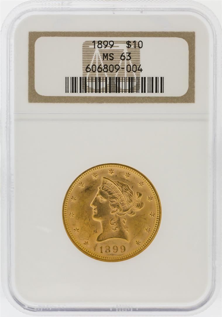 One 1899 NGC MS63 $10 Liberty Head Eagle Gold Coin. NGC Certified.