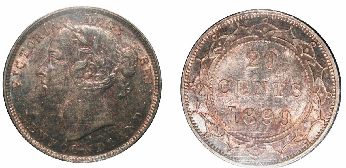 1899 Nfld Sm.9 20¢ ICCS MS64, superb example. Superbly toned with great luster! Scarce!