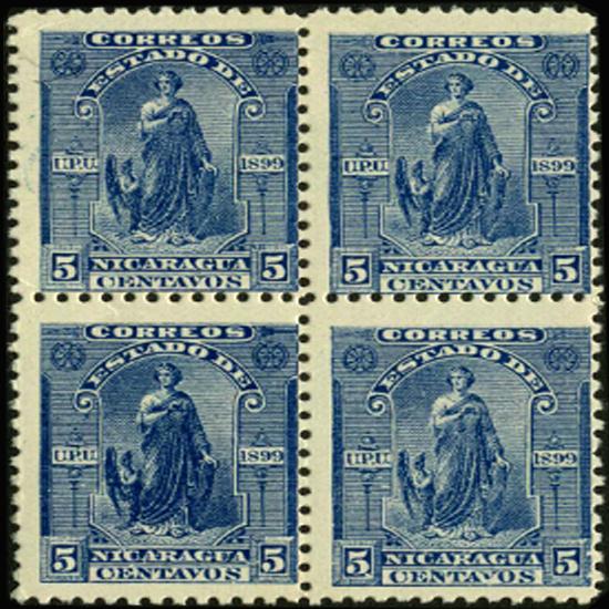 Mint; LH w/ 2 NH scarce mint block of 4 no hidden flaws; 1S99 error; short V; SC-113
