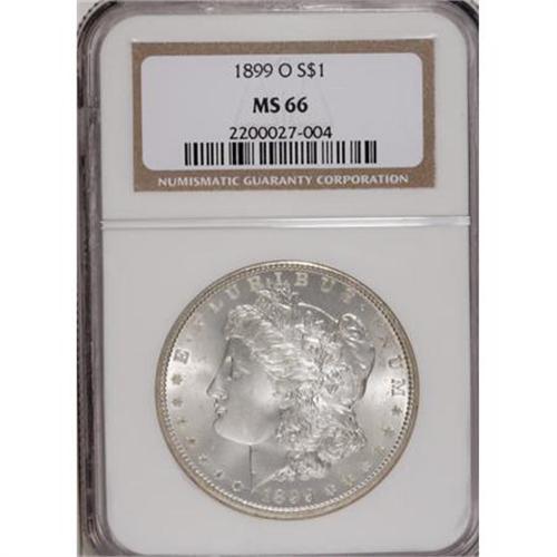 <B>1899-O $1 MS66 NGC.</B></I> NGC Census: (883/79). PCGS Population (1020/79). Mintage: 12,290,000. Numismedia Wsl. Price for NGC/PCGS coin in MS66: $360. (#7260)<BR><BR><B>Coin Engraver:</B> George T. Morgan<BR><BR><b>Shipping:</b> Coins & Currency (<a target="_blank" href="http://www.heritageauctions.com/common/shipping.php">view shipping information</a>)
