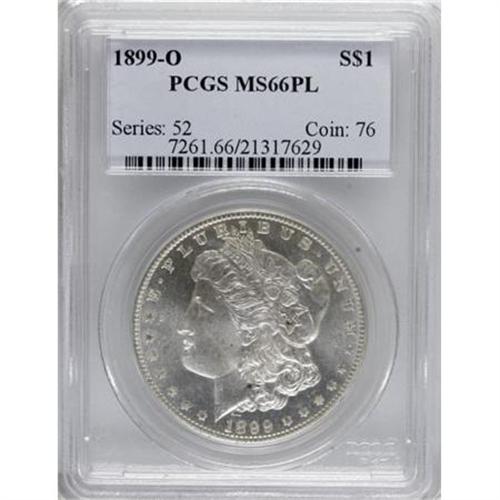 <B>1899-O $1 MS66 Prooflike PCGS.</B></I> Well struck and essentially brilliant, save for faint milkiness in the fields, this prooflike Premium Gem shows impressive, glassy reflectivity in the fields and light frost on the devices. Surface blemishes are minimal, as expected. Population: 12 in 66 Prooflike, 0 finer (6/07). <BR><I>From the Diamond Head Registry Set of Prooflike Dollars.</B></I><BR><BR><B>Coin Engraver:</B> George T. Morgan<BR><BR><b>Shipping:</b> Coins & Currency (<a target="_blank" href="http://www.heritageauctions.com/common/shipping.php">view shipping information</a>\)