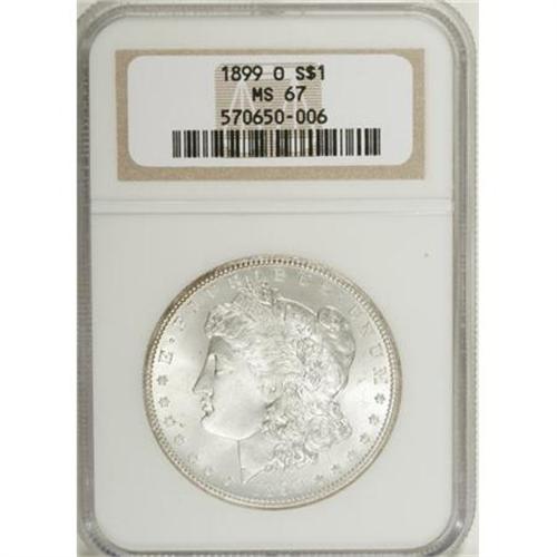 <B>1899-O $1 MS67 NGC.</B></I> The New Orleans Mint was the only facility in a former Confederate state to re-open after the Civil War, though by the time this dollar was struck in 1899, New Orleans would have only a decade of production left. This flashy and largely brilliant piece, well-defined save for the highpoints of the obverse, has a touch of amber toning at the margins.<BR><I>From The Silver Fox Collection.</B></I><BR><BR><b>Shipping:</b> Coins & Currency (<a target="_blank" href="http://www.heritageauctions.com/common/shipping.php">view shipping information</a>)