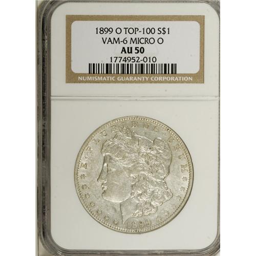 <B>1899-O $1 Micro O AU50 NGC.</B></I> Vam-6, Top-100. NGC Census: (0/0). PCGS Population (5/18). (#87260)<BR><BR><b>Shipping:</b> Coins & Currency (<a target="_blank" href="http://www.heritageauctions.com/common/shipping.php">view shipping information</a>)