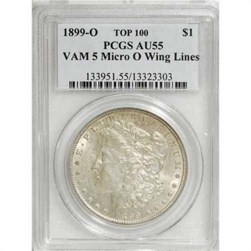 <B>1899-O $1 Micro O AU55 ANACS.</B></I> VAM-5. Wing Lines. A Top 100 Variety. PCGS Population (11/6). (#87260)<BR><BR><b>Shipping:</b> Coins & Currency (<a target="_blank" href="http://www.heritageauctions.com/common/shipping.php">view shipping information</a>)