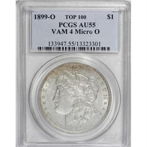 <B>1899-O $1 Micro O AU55 PCGS.</B></I> VAM-4. A Top 100 Variety. PCGS Population (11/6). (#87260)<BR><BR><b>Shipping:</b> Coins & Currency (<a target="_blank" href="http://www.heritageauctions.com/common/shipping.php">view shipping information</a>)