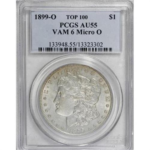 <B>1899-O $1 Micro O AU55 PCGS.</B></I> VAM-6. Top 100. PCGS Population (11/6). NGC Census: (0/0). (#87260)<BR><BR><b>Shipping:</b> Coins & Currency (<a target="_blank" href="http://www.heritageauctions.com/common/shipping.php">view shipping information</a>)