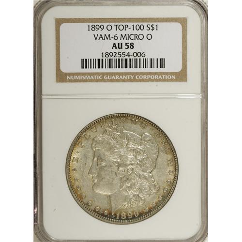 <B>1899-O $1 Micro O AU58 NGC.</B></I> Vam-6 Top 100. NGC Census: (0/0). PCGS Population (4/2). (#87260)<BR><BR><b>Shipping:</b> Coins & Currency (<a target="_blank" href="http://www.heritageauctions.com/common/shipping.php">view shipping information</a>)