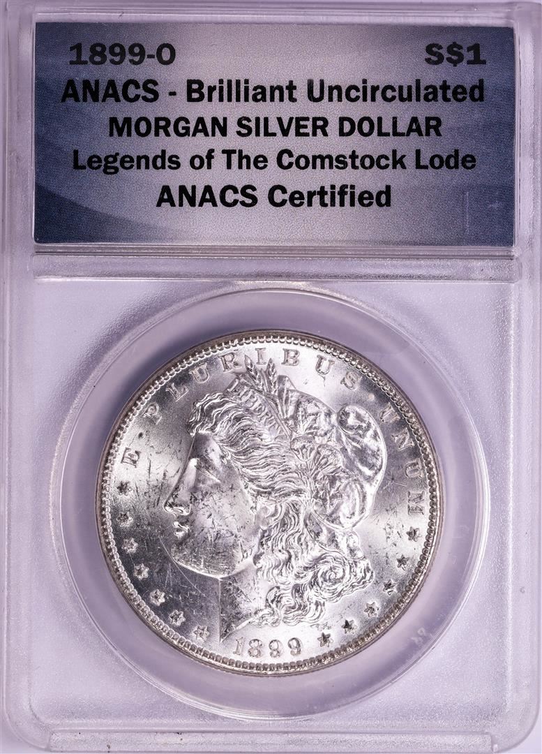 One 1899-O $1 Morgan Silver Dollar Coin ANACS Brilliant Uncirculated. ANACS Certified.