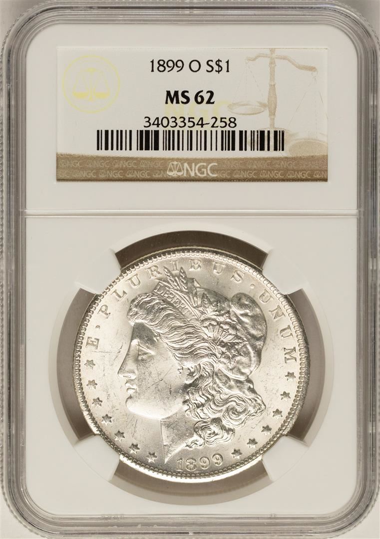 One 1899-O $1 Morgan Silver Dollar Coin NGC MS62. NGC Certified.