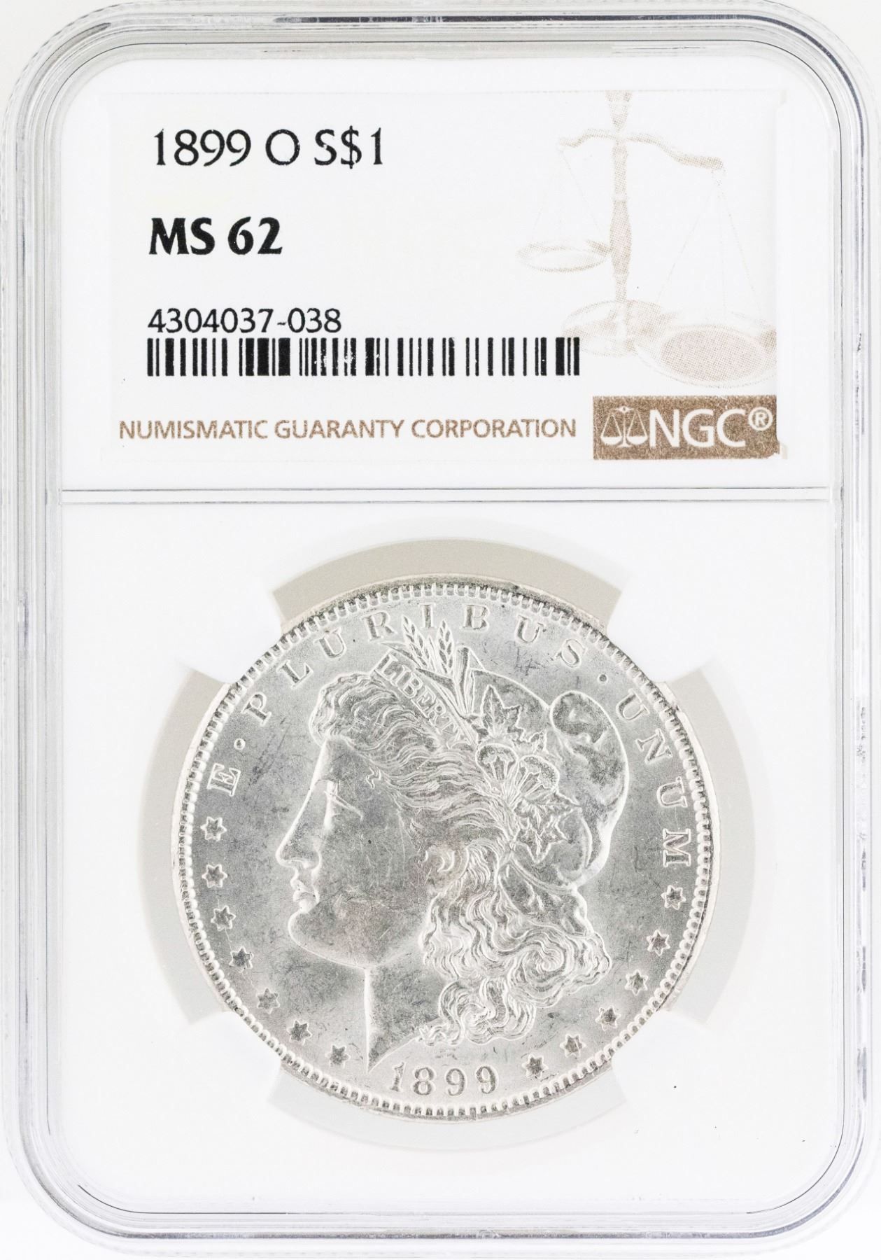 One 1899-O $1 Morgan Silver Dollar Coin NGC MS62.