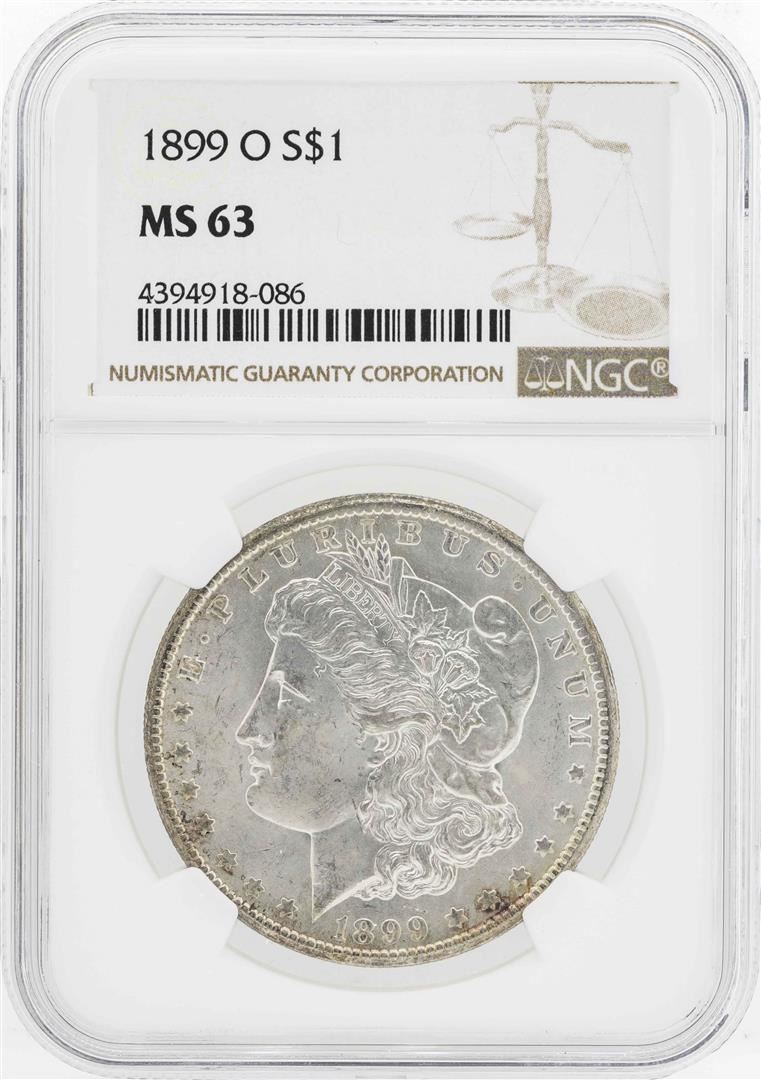 One 1899-O $1 Morgan Silver Dollar Coin NGC MS63. NGC Certified.