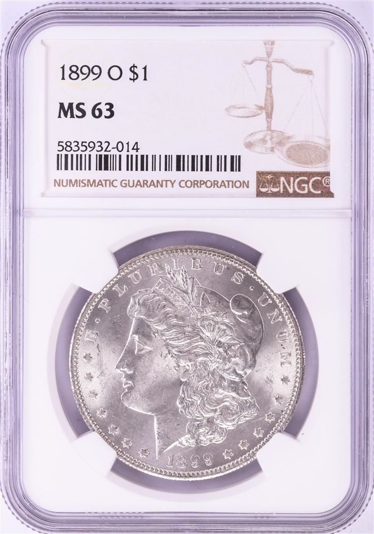 One 1899-O $1 Morgan Silver Dollar Coin NGC MS63. NGC Certified.