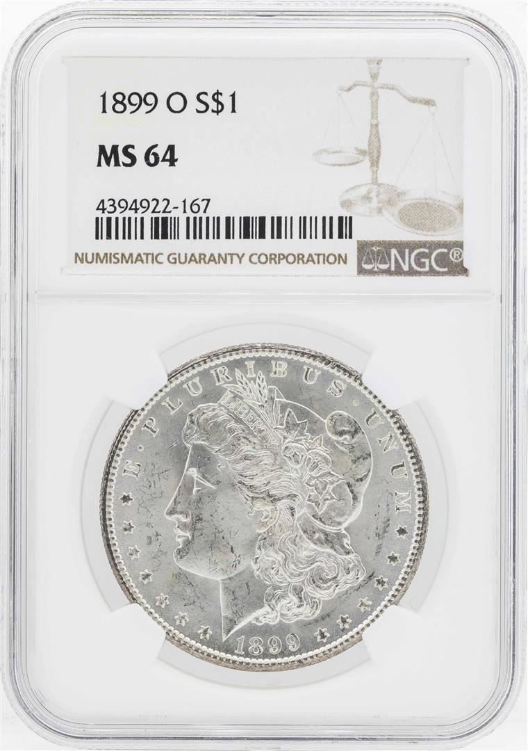 One 1899-O $1 Morgan Silver Dollar Coin NGC MS64. NGC Certified.