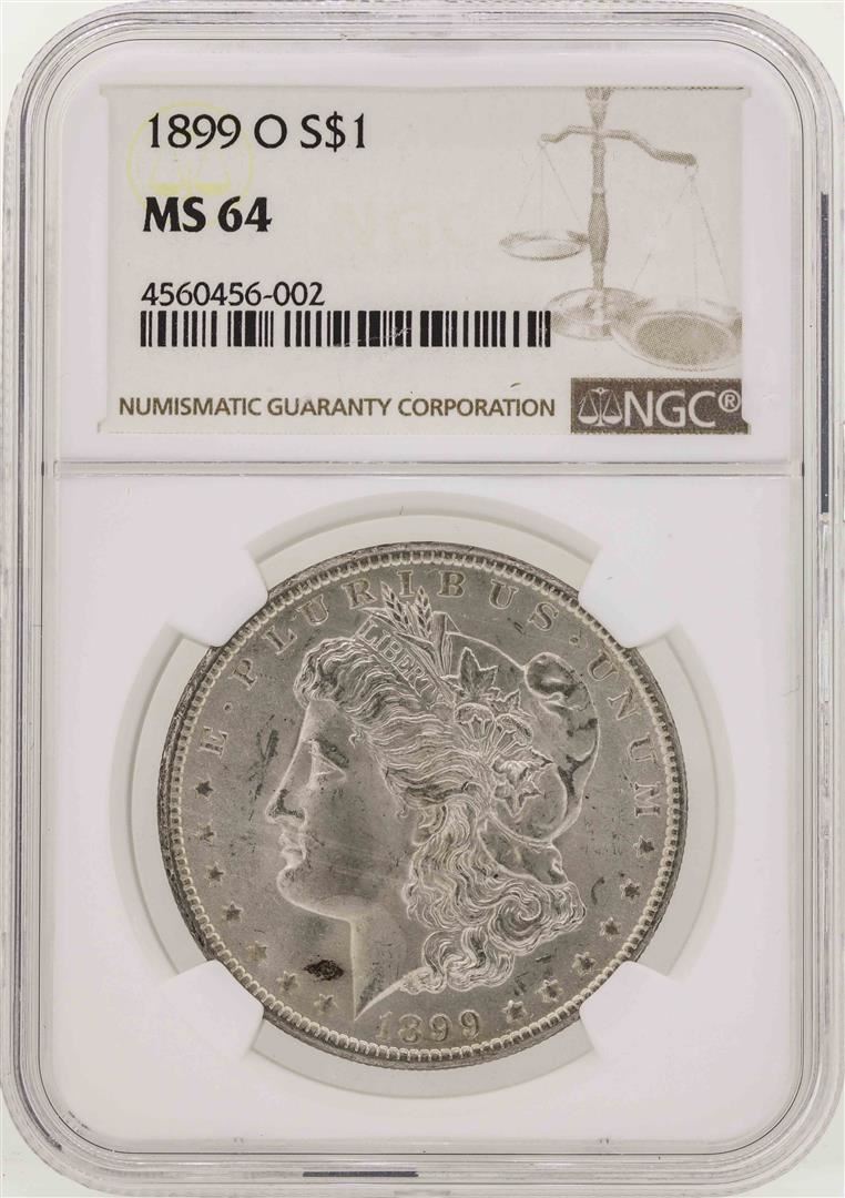 One 1899-O $1 Morgan Silver Dollar Coin NGC MS64. NGC Certified.