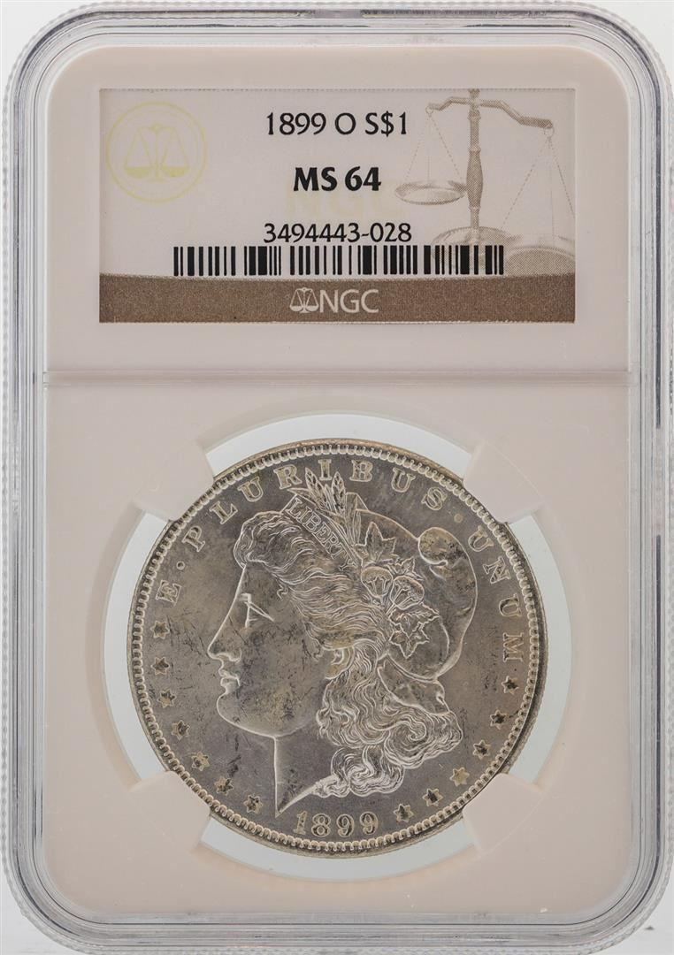 One 1899-O $1 Morgan Silver Dollar Coin NGC MS64. NGC Certified.