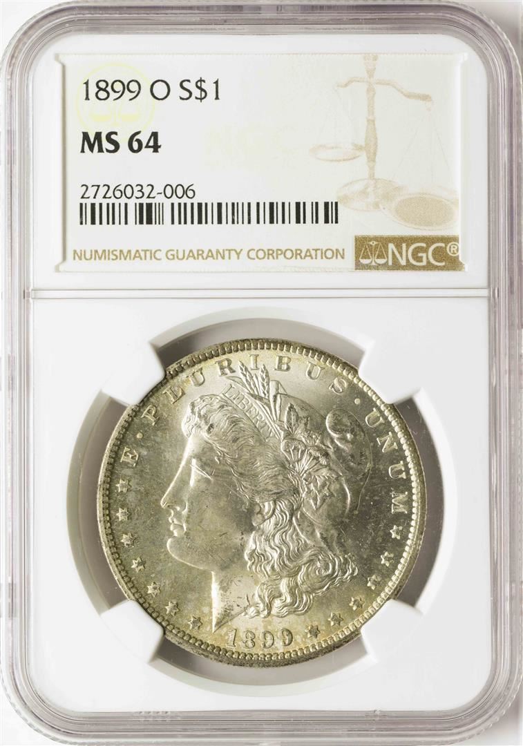 One 1899-O $1 Morgan Silver Dollar Coin NGC MS64. NGC Certified.