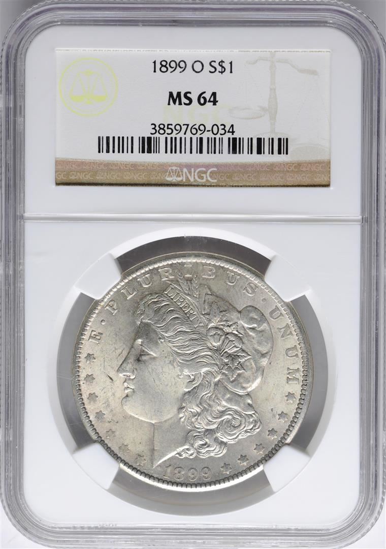 One 1899-O $1 Morgan Silver Dollar Coin NGC MS64. NGC Certified.