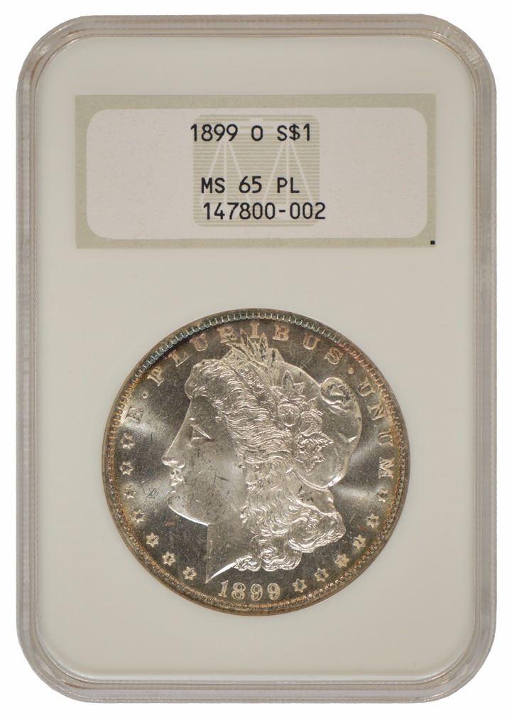 One 1899-O $1 Morgan Silver Dollar Coin NGC MS65PL.