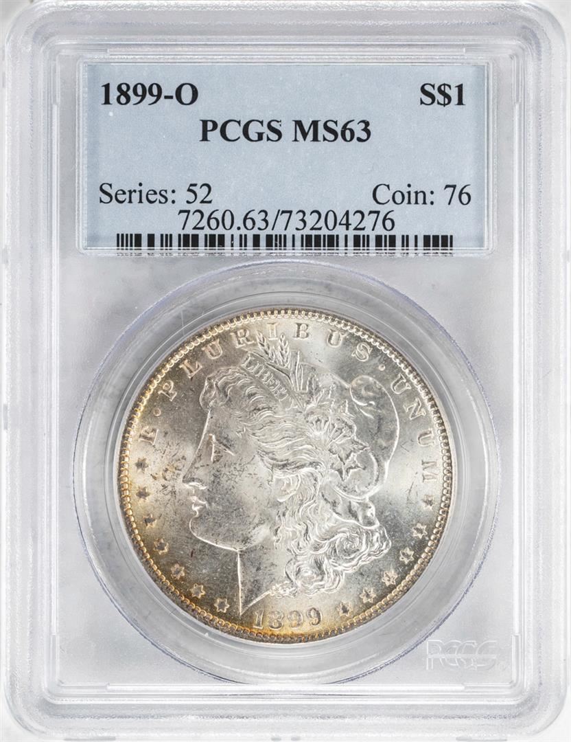 One 1899-O $1 Morgan Silver Dollar Coin PCGS MS63 Nice Toning. PCGS Graded.