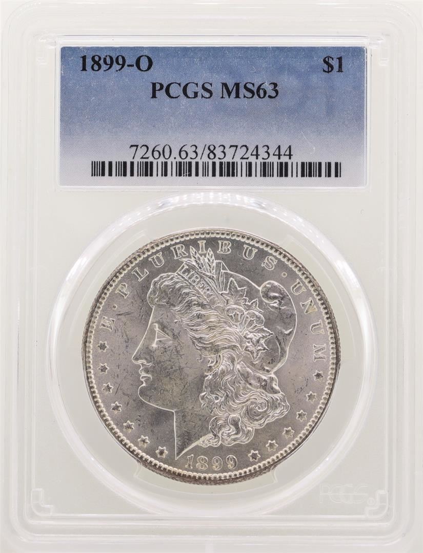 One 1899-O $1 Morgan Silver Dollar Coin PCGS MS63. PCGS Graded.
