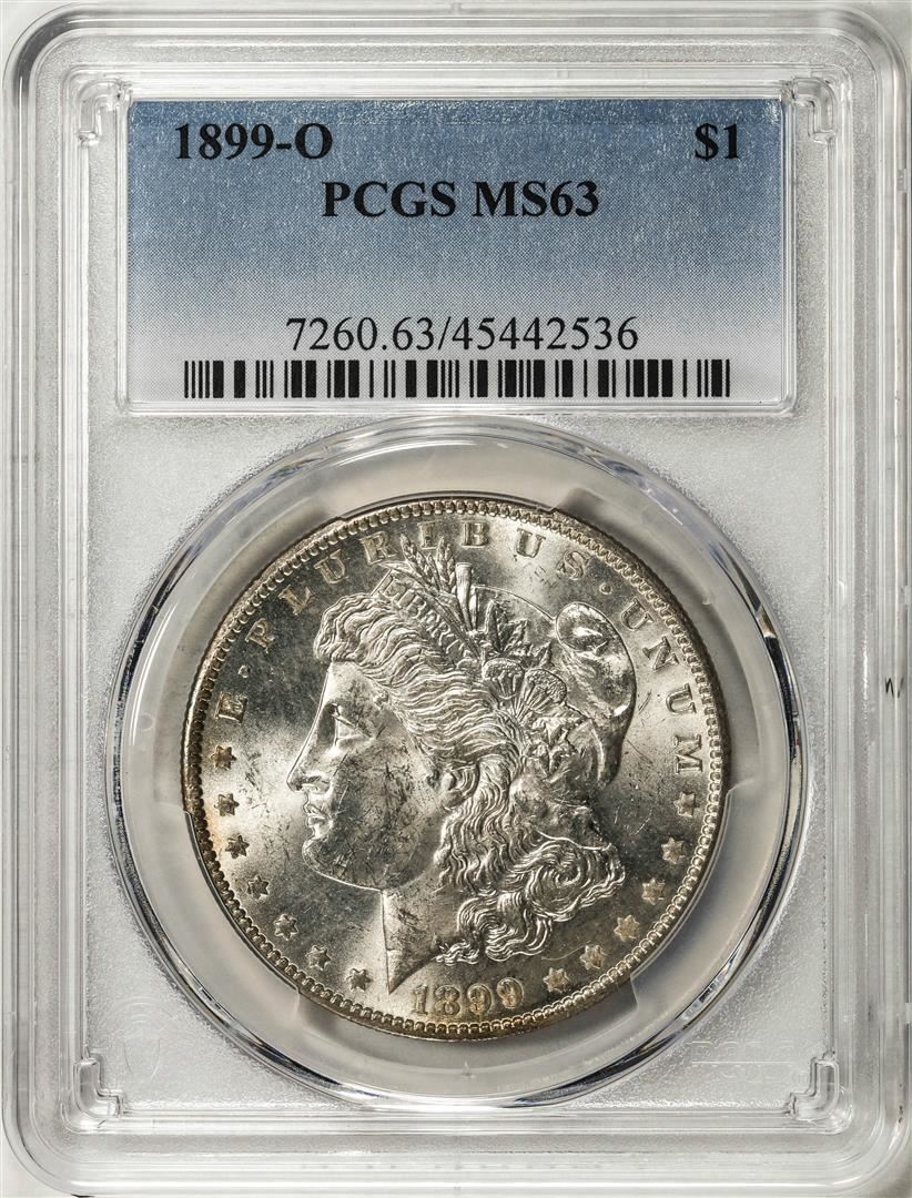 One 1899-O $1 Morgan Silver Dollar Coin PCGS MS63. PCGS Graded.